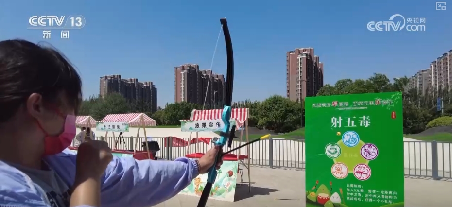 此外,包香囊、投壺、“釣”粽子、射“五毒”、套圈等趣味遊戲也吸引着不少市民前來一試身手。