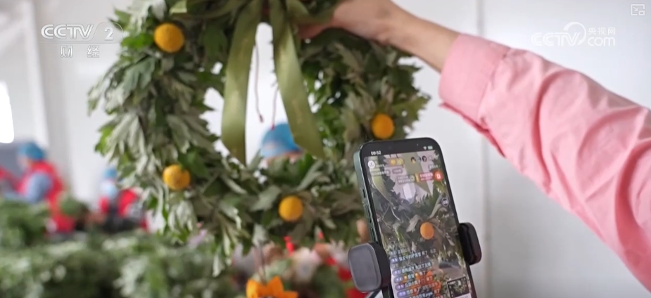 在江蘇新沂的一家艾草企業直播間裏,主播正熱情地介紹新款艾草文創產品,線上訂單源源不斷。一旁的生產線上,工人們也正在熟練地製作艾草花環。端午臨近,這款艾草花環日均銷量突破萬件。