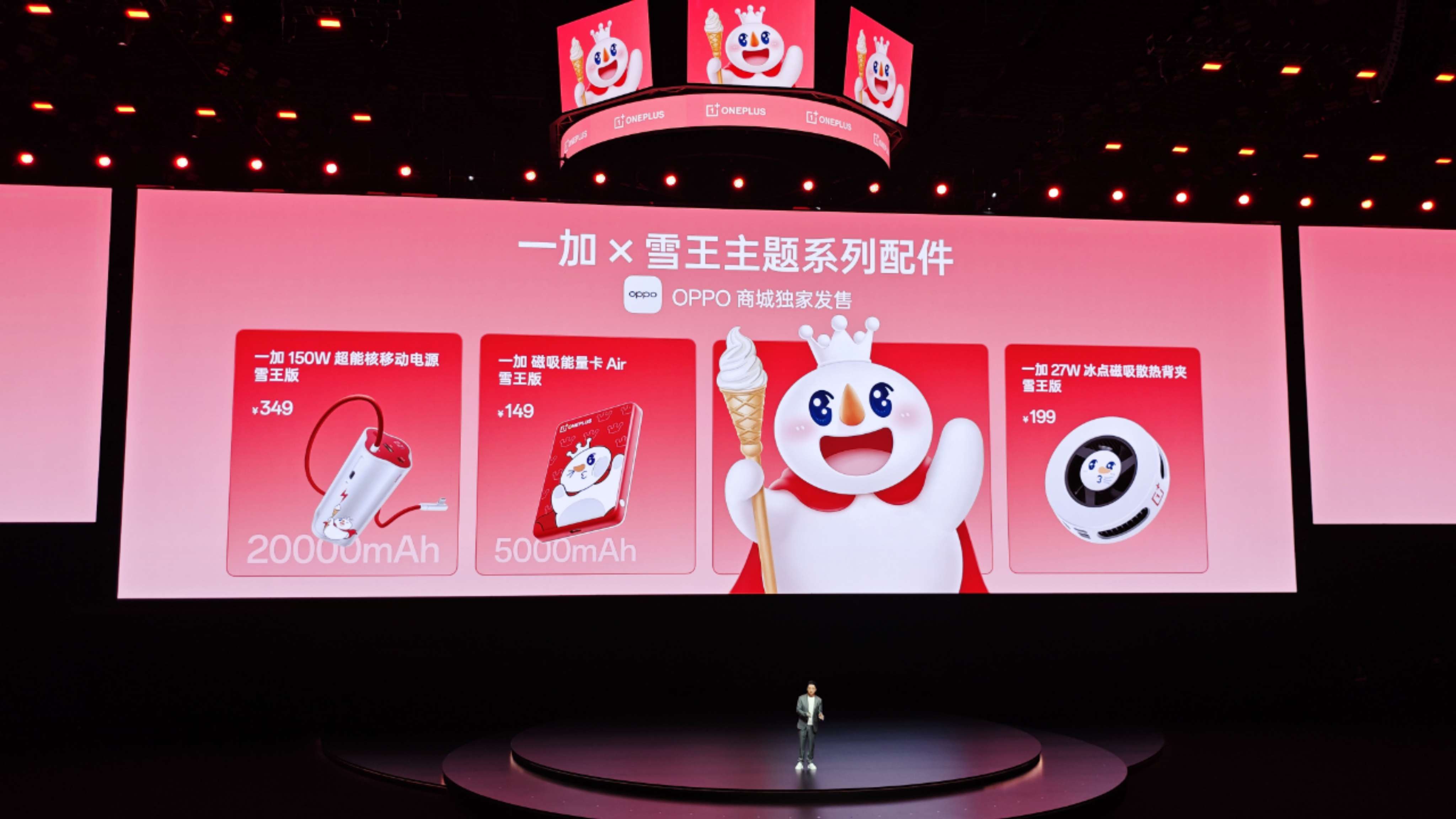 此外,一加與蜜雪冰城聯名推出雪王主題配件,包括150W超能核動電源、磁吸散熱背夾等,售價均為349元。