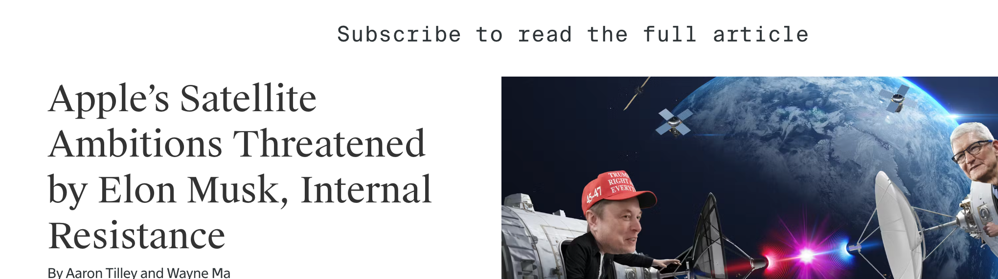 外媒:馬斯克攜SpaceX入局 欲以50億美元預付款截胡蘋果衞星合作計劃