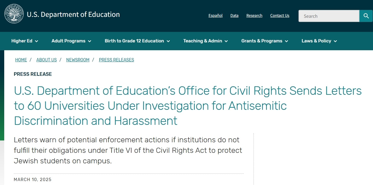 今年3月,美國教育部門向60所大學及其校區發送信件,警告他們要“保護猶太學生”,否則將“面臨聯邦執法行動”。這些校園包括了四個加州大學校園——聖地亞哥、聖塔芭芭拉、伯克利和戴維斯,以及南加州大學、波莫納學院、斯坦福大學、錢普大學、聖莫尼卡學院和薩克拉門託州立大學。