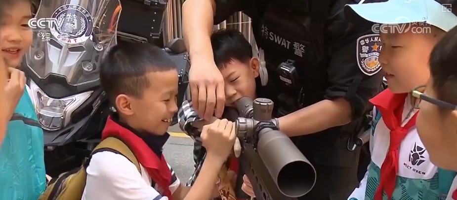 在上海,警察叔叔走進校園,通過精心設計,將安全教育融入到各種體驗、互動、遊戲中。活動現場,特警小哥直接帶來手槍、狙擊槍、警用摩托等,逐一演示、講解,瞬間收穫了一批小迷弟。