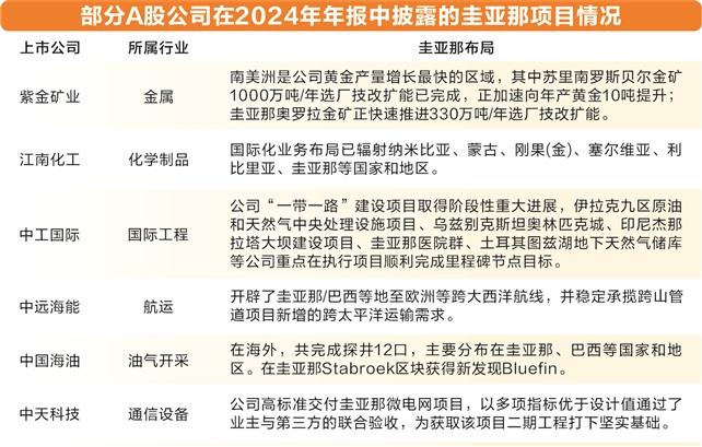 在多家A股公司的2024年年報中,都提到了一個遙遠的南美國度——圭亞那。無論是資源能源領域的中國海油、紫金礦業,還是產業鏈中游的招商輪船、中工國際,以及民營企業中天科技、迪威爾,都將圭亞那項目列入財報,不少公司將在圭項目作為牽引公司海外業務增量的重要動力。這個南美洲北部國家,何以吸引眾多中資企業趕潮佈局呢?