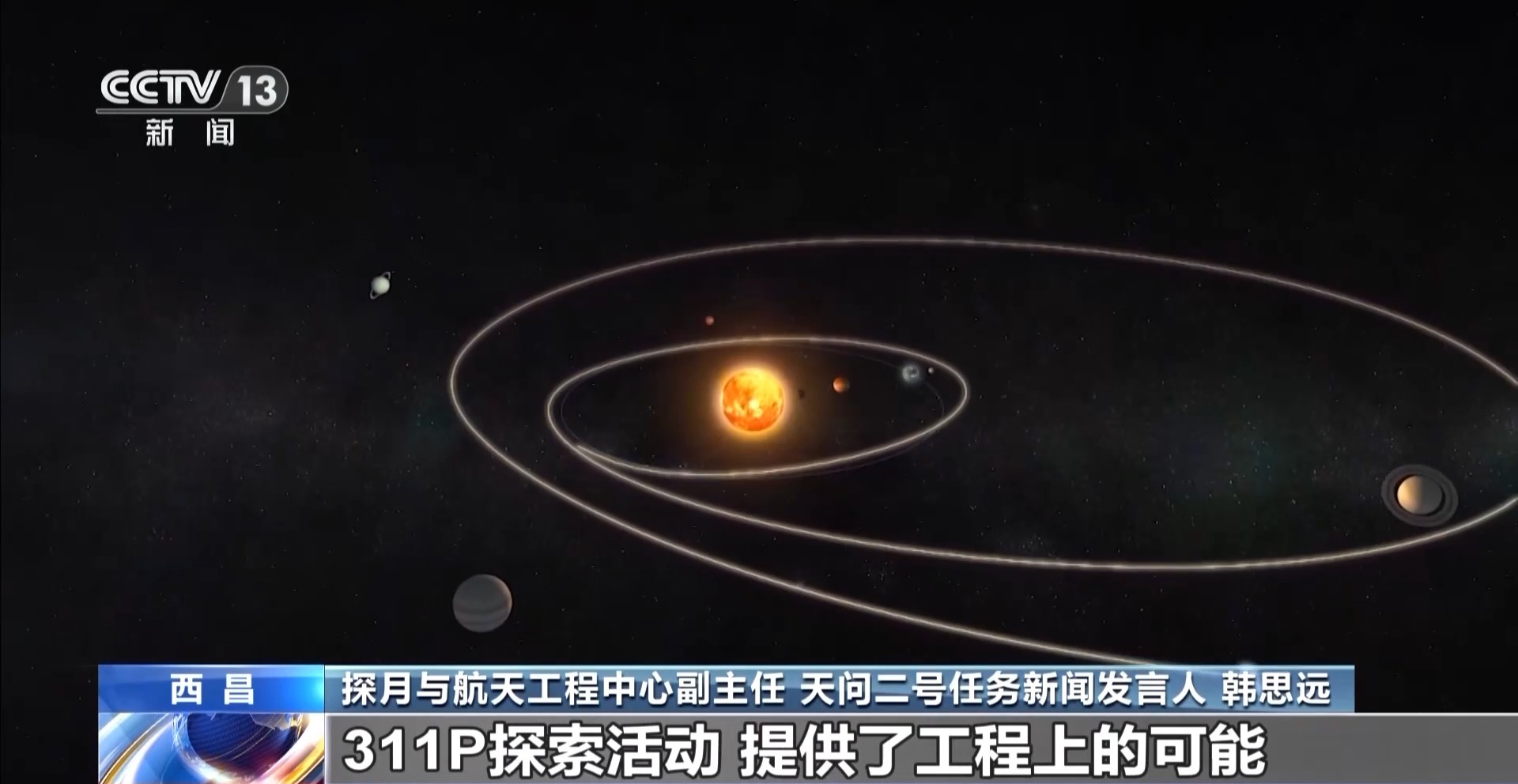 *探月與航天工程中心副主任 天問二號任務新聞發言人 韓思遠:*我們在前期的軌道設計、方案詳細設計等方面,開展了大量的仿真計算。我們通過優化軌道設計等等手段,能夠實現較小能源代價的情況下,對小行星實現抵達和採樣返回。這些為我們接續實施好311P探索活動,提供了工程上的可能。