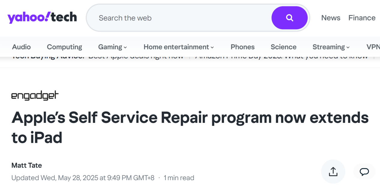蘋果宣佈將iPad納入自助維修服務 提供原裝配件與維修支持