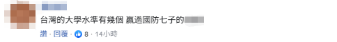 針對此事,有島內網友表示,“人家都比你厲害吧,是自卑心理障礙”“台灣的大學水準有幾個贏過國防七子的”。