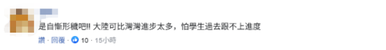 還有網友諷刺稱,“是自慚形穢吧!大陸可比台灣進步太多,怕學生過去跟不上進度”。