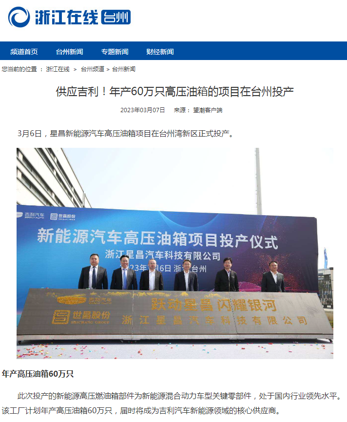 最後,2023年公開新聞顯示,世昌股份子公司浙江星昌汽車科技有限公司年產60萬隻高壓油箱的項目在台州投產,達產後預計可實現年銷售收入2億元,按此推算高壓油箱單價約為333元/個。然而,招股書披露世昌股份在售的高壓油箱單價超過500元,兩者相差約167元/個,差異幅度達33.4%。世昌股份主要產品單價究竟是多少,公司也有必要給出回應。