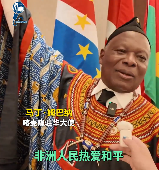 喀麥隆駐華大使馬丁·姆巴納從更宏觀的角度解讀了非洲的顏色。他指出,綠色代表和平,非洲人民熱愛和平,他們是充滿愛的人。紅色象徵着他們必須工作,必須付出艱辛的努力,賺取更多的錢,才能過上更好的生活。黃色代表着愛國主義。“你可以發現,大部分非洲國家的國旗都帶有這三種顏色。”