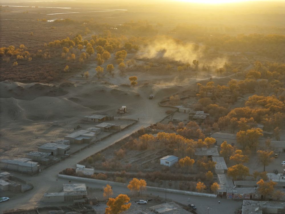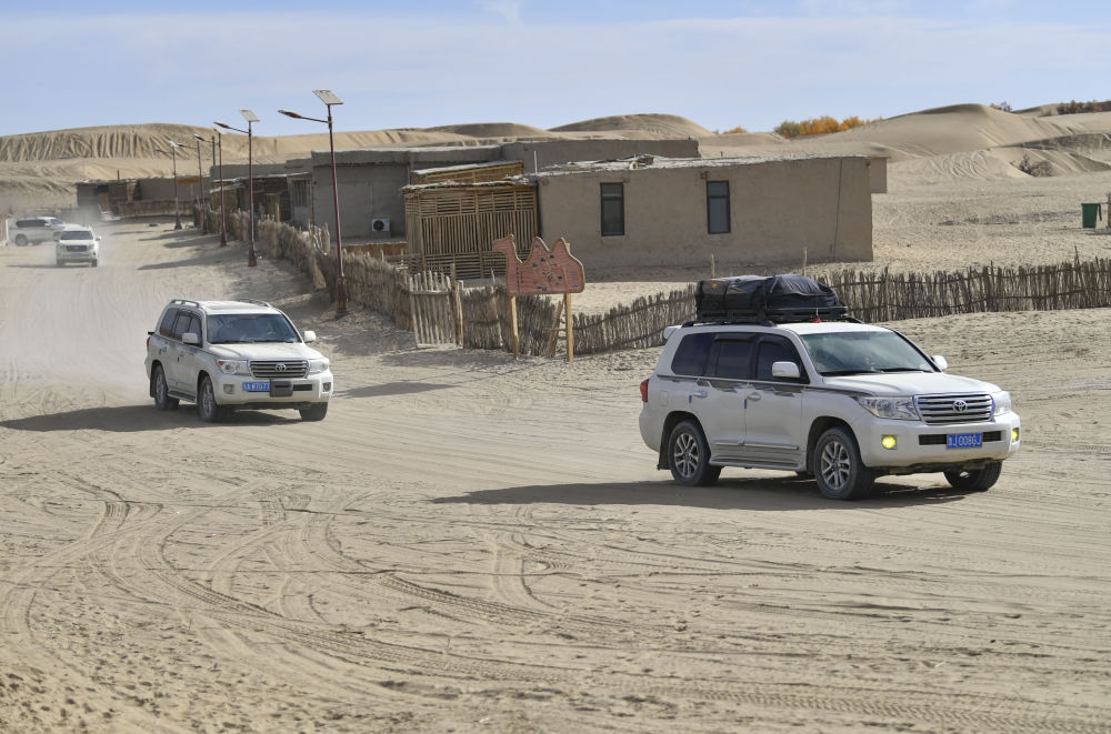 自駕遊客開車行駛在新疆于田縣達裏雅布依舊址景區(2024年11月6日攝)。新華社記者 胡虎虎 攝