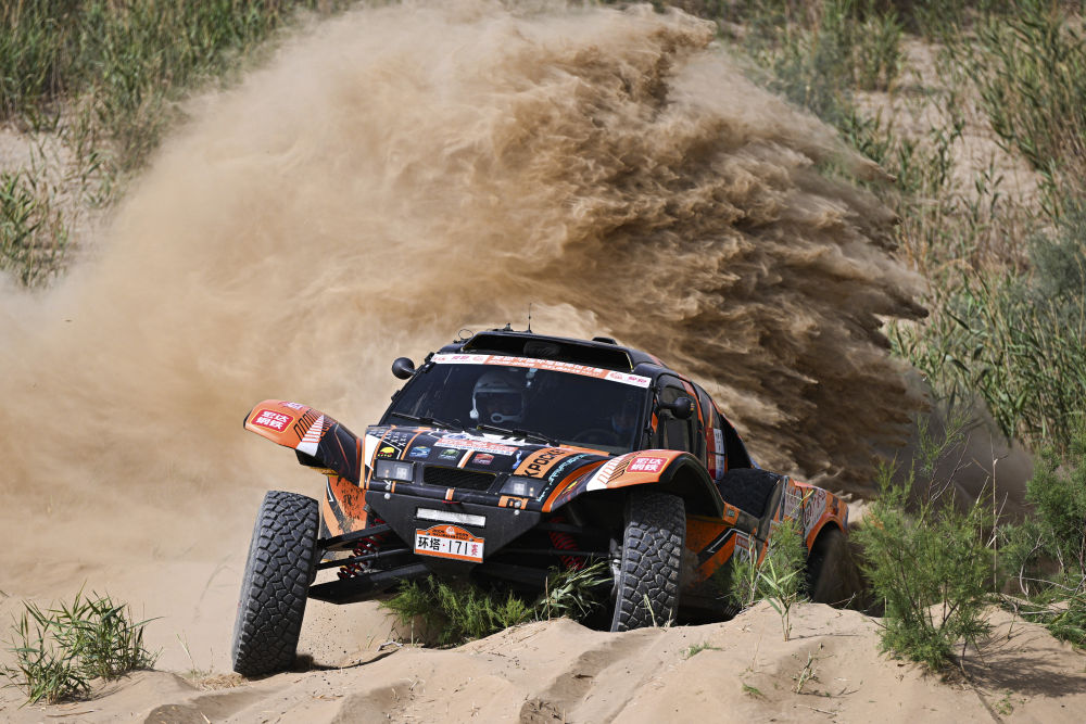 2025年5月26日,鼎新銅業沸鐵拉力車隊車手趙雷在比賽中。當日,2025中國環塔國際拉力賽進入第五賽段。新華社記者 辛悦衞 攝