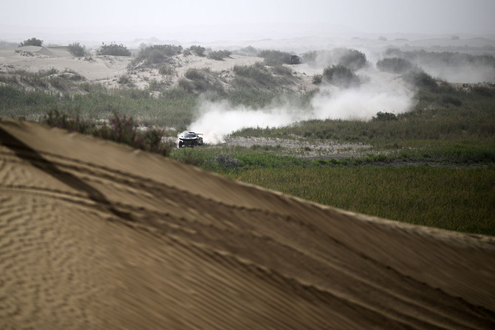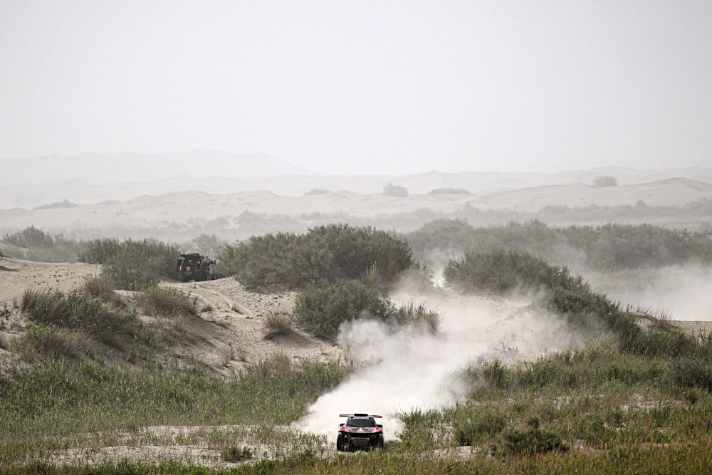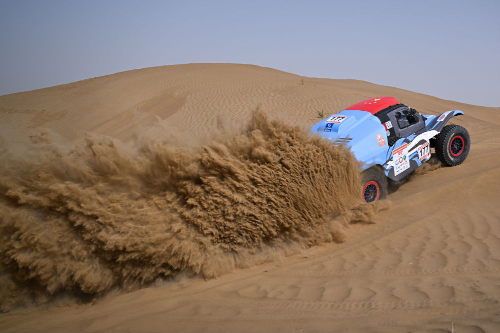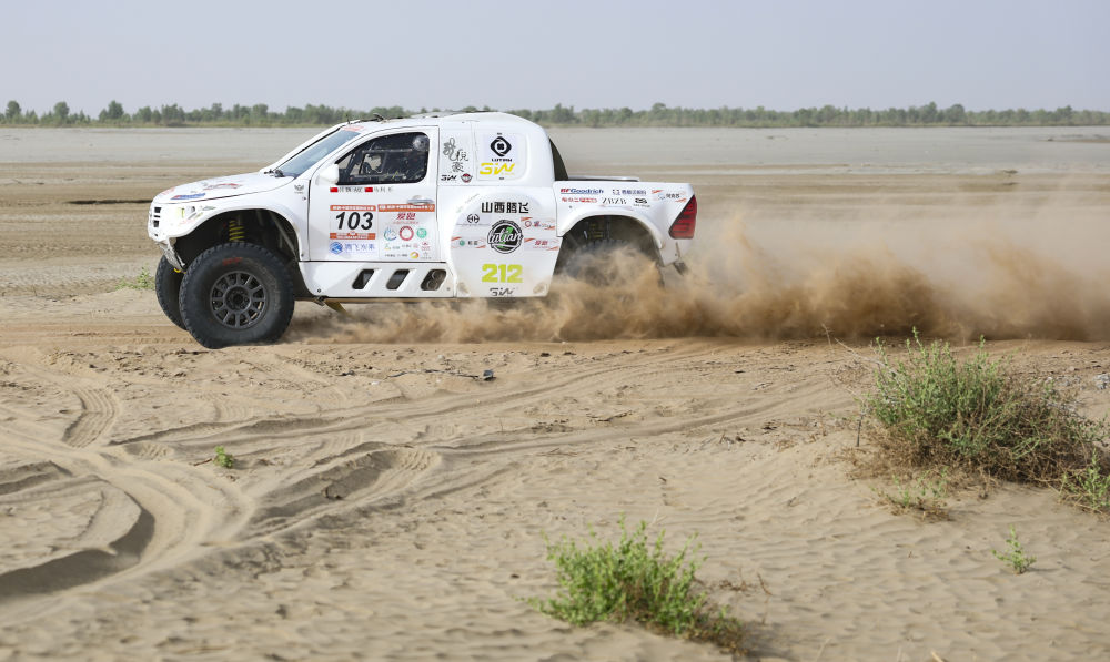 2025年5月26日,韓魏汽車運動車隊車手韓魏、領航員馬利駕駛賽車在比賽中。新華社記者 胡星宇 攝
