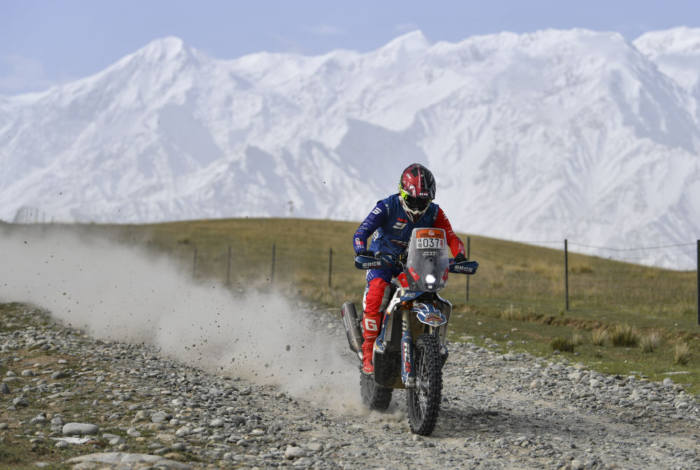 2023年5月31日,在新疆和田地區策勒縣崑崙山區,陝西省榆林市紅駝拉力賽車隊1隊南非車手科克斯在比賽中。新華社記者 胡虎虎 攝