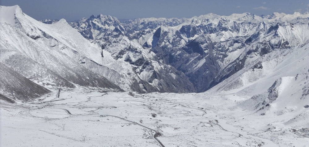 這是2024年4月25日在新疆和田地區拍攝的崑崙山脈(無人機照片)。新華社記者 胡虎虎 攝