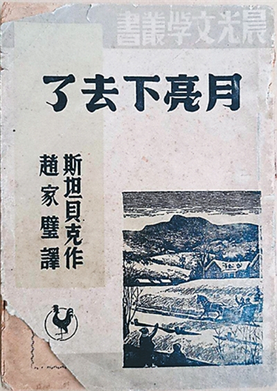 趙家璧在20世紀30年代就對美國文學很感興趣,讀過斯坦貝克的《人鼠之間》《憤怒的葡萄》。1942年,他在桂林看到了《月亮下去了》,很快就讀完了,作品中侵略者的橫行霸道,淪陷區人民的不屈抵抗,讓他覺得這講的簡直就是中國淪陷區的事,遂對作品全文進行了翻譯。該譯本問世後再版多次,影響了一代又一代讀者。