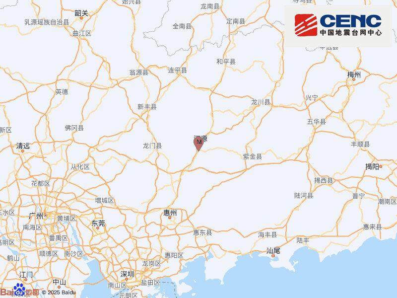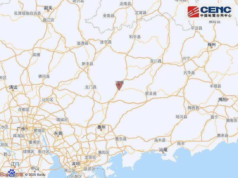 廣東河源市源城區發生3.5級地震,廣州、佛山等地有震感