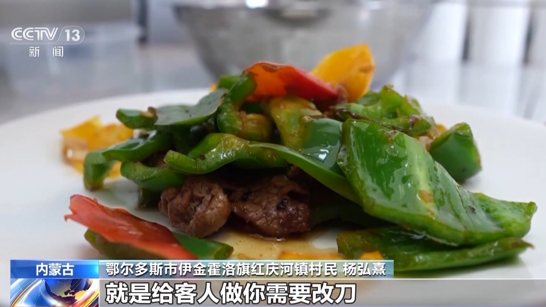 *內蒙古鄂爾多斯市伊金霍洛旗紅慶河鎮村民 楊弘熹:*家庭做是一種做法,在飯店給客人做又是一種做法,給客人做你需要改刀,又做得漂亮,還要做得色香味俱全。
