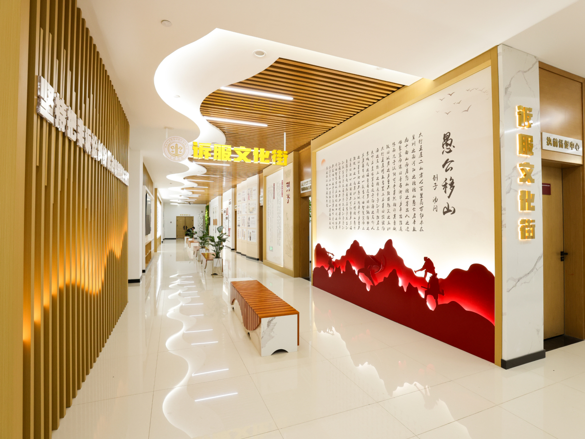 這種文化浸潤不僅停留在視覺層面,更滲透到糾紛化解機制中。例如,調解員借鑑“兩小兒辯日”的思辨智慧,引導當事人換位思考;執行幹警以“夸父追日”的典故激勵團隊攻堅“執行難案件”。文化敍事與法律實務的融合,讓冰冷的條文多了温度,也讓羣眾更易理解司法背後的價值導向。