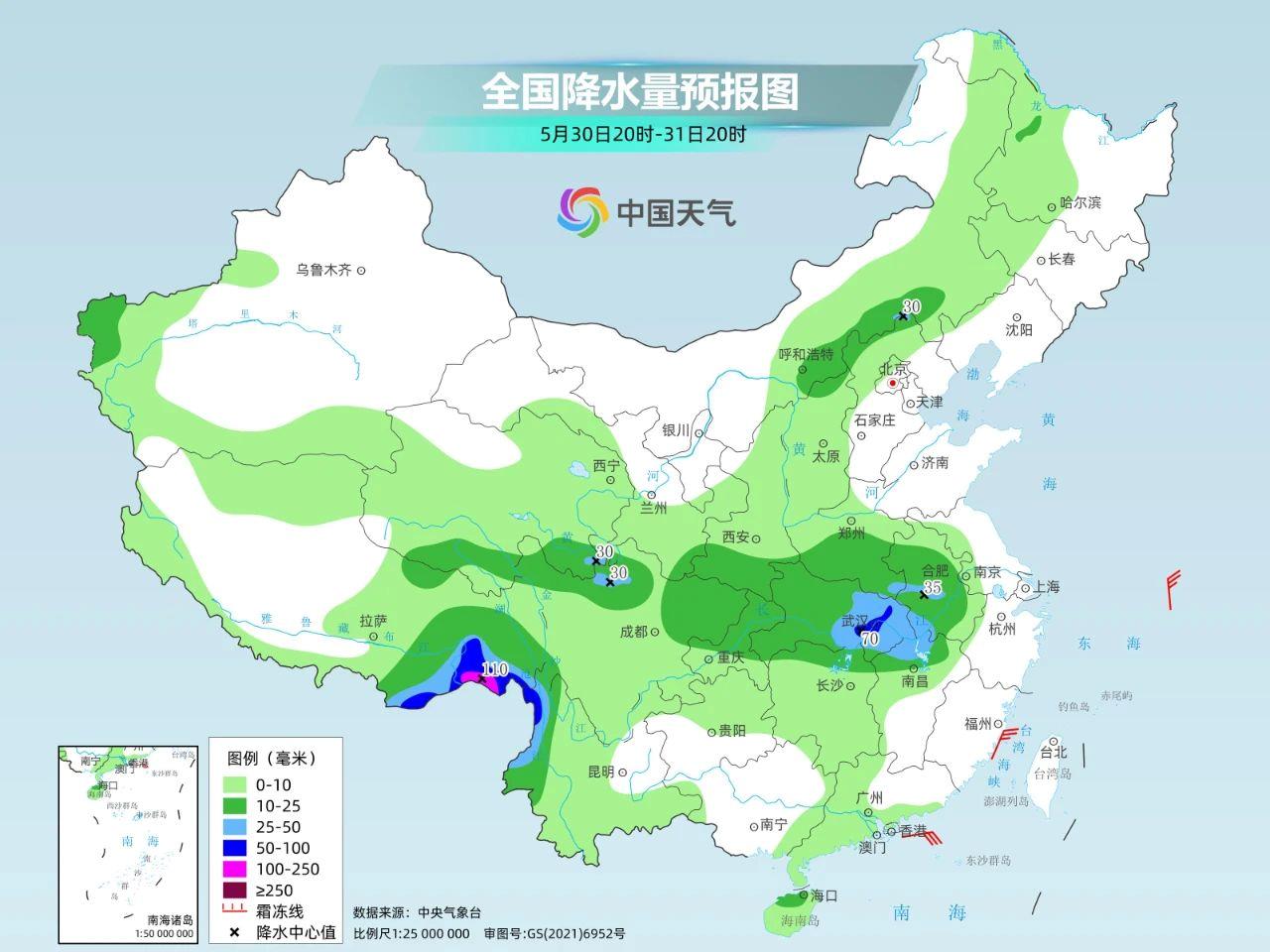 預計,5月31日至6月1日(端午假期前兩天),長江中下游沿江雨勢最強,其中5月31日,江漢、江淮、江南北部等地有中到大雨,湖北東部、安徽西南部、江西北部等地有暴雨、局地大暴雨。