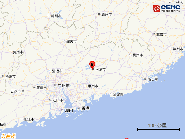 根據中國地震台網正式測定,5月30日2時21分在廣東河源市源城區發生3.0級地震,震源深度10公里,震中位於北緯23.72度,東經114.68度。