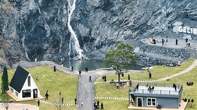 莫干山鎮五四村的格里恩咖啡所在地,曾是廢棄礦坑,如今瀑布飛流直下,草坪與礦巖相互映襯,營造出頗具工業美學的新場景。自去年11月開業以來,這家被稱為“小冰島”的咖啡館持續走紅,今年“五一”假期日均接待遊客2000多人次,登上長三角熱門咖啡館榜單。主理人谷雪松感慨:“這裏吸引人的不僅是咖啡,更是風景!”