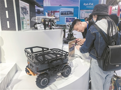 在户外場景中,機器人同樣能一展身手。在本屆哈洽會哈爾濱李鐵彬工業設計有限公司展台,“神奇小車”機器人吸引了眾多參觀者。它搭載的智能跟隨系統可讓露營者告別推露營車的麻煩。用户走到哪裏,它就把露營車推到哪裏,如影隨形,堪稱“貼心夥伴”。值得一提的是,它還能變身大型充電寶,為用户提供電力。