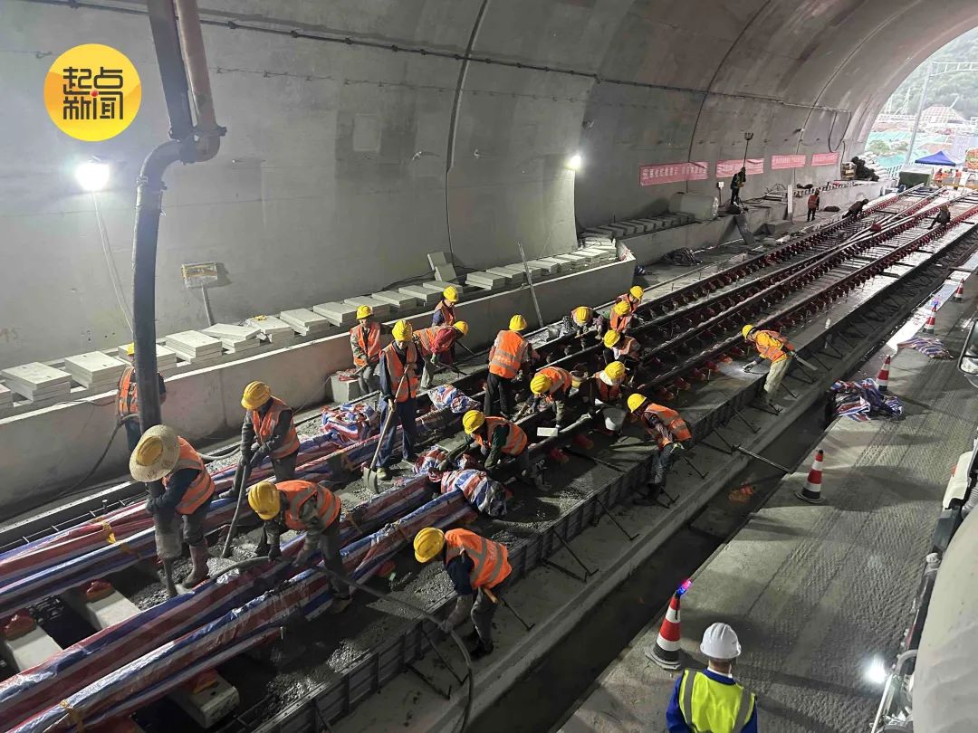 此次澆築的無砟道岔採用岔區長枕埋入式無砟軌道技術,施工過程中運用智能化設備和數字化管理手段,實現軌距誤差小於1毫米、軌向偏差小於2毫米的行業領先標準,確保高鐵列車在複雜山區地形下的平穩運行。