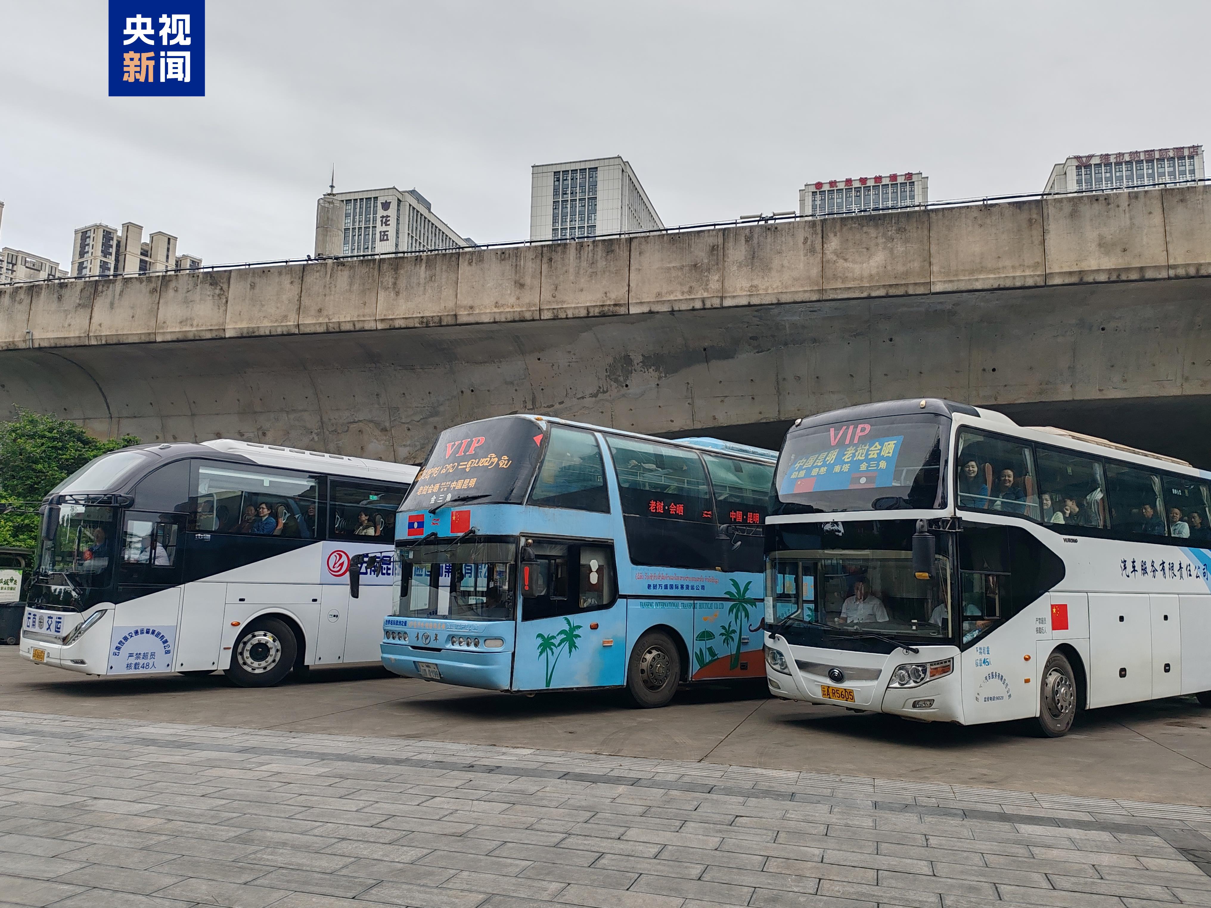 上午,隨着發車指令聲響,搭載乘客的9輛客車和滿載蔬菜、日用百貨的5輛貨車分別從中國東盟自貿區昆明國際客運站、西雙版納東盟國際綜合交通服務中心及雲南建投物流雲上營家國際供應鏈示範中心同步發車,共同開展跨境運輸任務。其中,客車車隊從磨憨口岸出境,經過老撾磨丁口岸後開往老撾會曬;貨車車隊從中國昆明出發,從勐臘勐滿口岸出境,途經老撾班海口岸、班象果,到達老撾會曬。貨車全線單程約880公里,客車全線單程約910公里,預計用時3天。