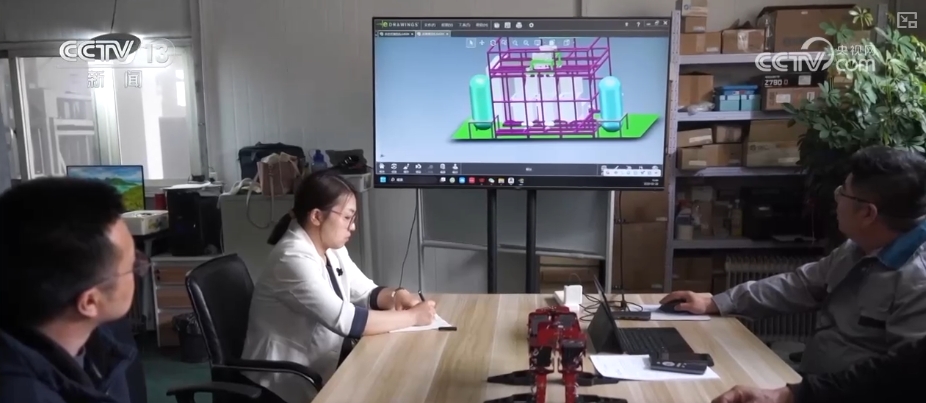 在遼寧大連的這家裝備製造企業的新廠房裏,企業負責人胡晨光與技術人員討論着訂單的生產進度,這批訂單是一款清洗金屬零部件的工業設備。