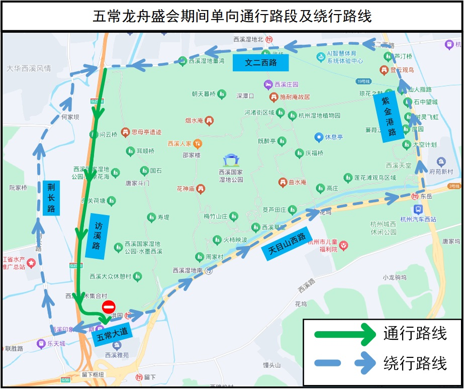 餘杭區五常街道2025年第十二屆五常龍舟盛會將於2025年5月31日舉行。公安機關交通管理部門將對訪溪路(文二西路-五常大道)段採取管控措施,繞行路線收好↓↓