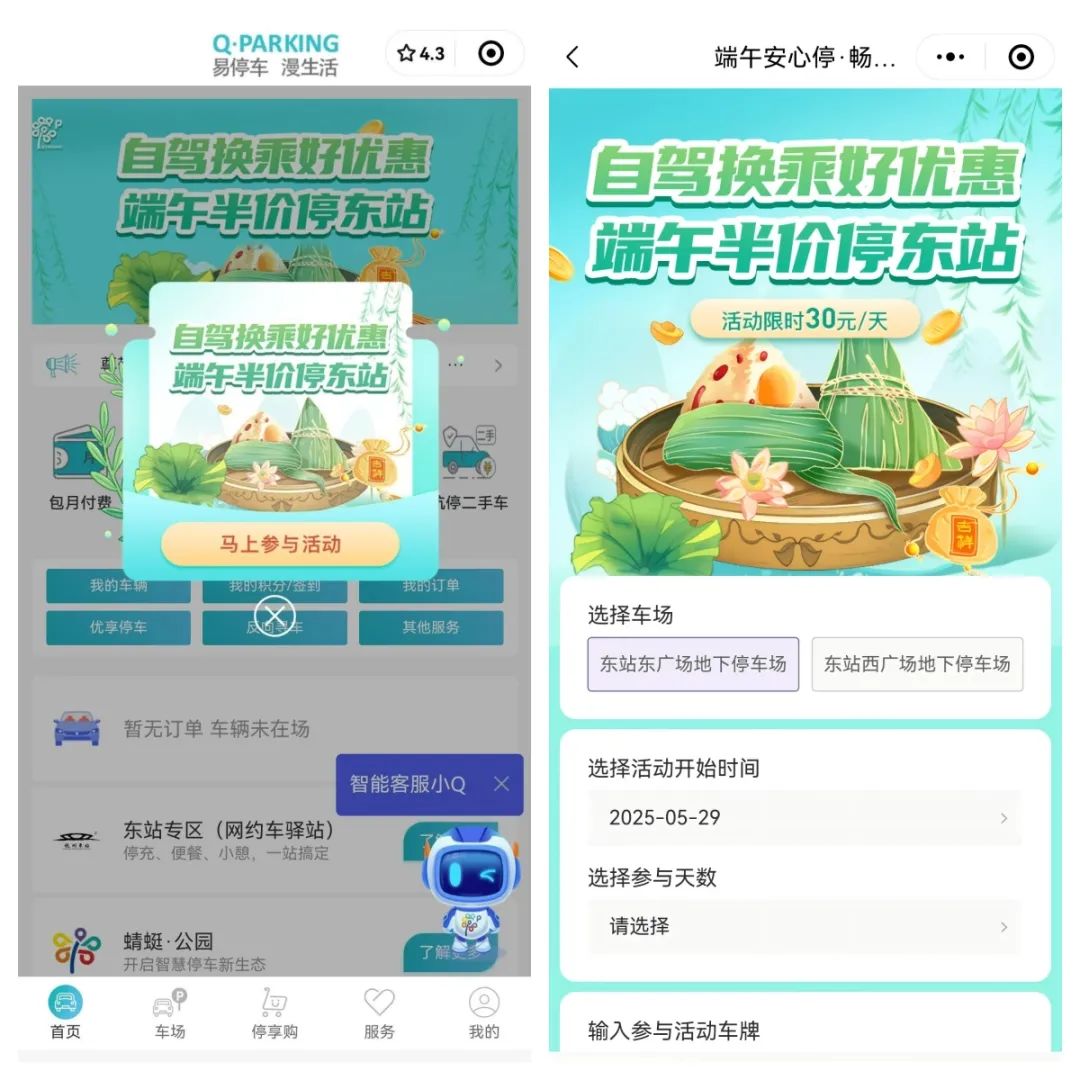 端午佳節已至,出行熱潮來臨,杭停股份推出“自駕換乘好優惠 端午半價停東站”主題活動。