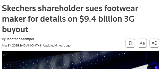 外媒:斯凱奇遭股東起訴,要求披露3G資本94億美元收購更多細節