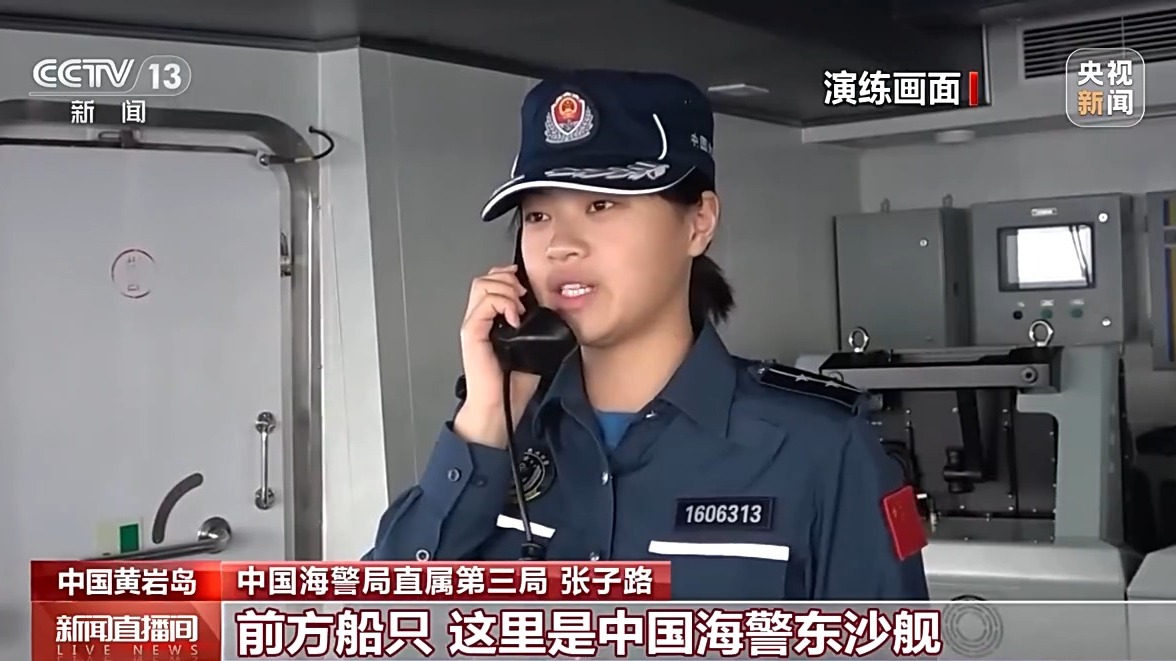 *中國海警局直屬第三局 張子路:*前方船隻,這裏是中國海警東沙艦,你船未經允許,進入中華人民共和國黃巖島海域,違反中華人民共和國有關法律,請調整航向立即駛離。