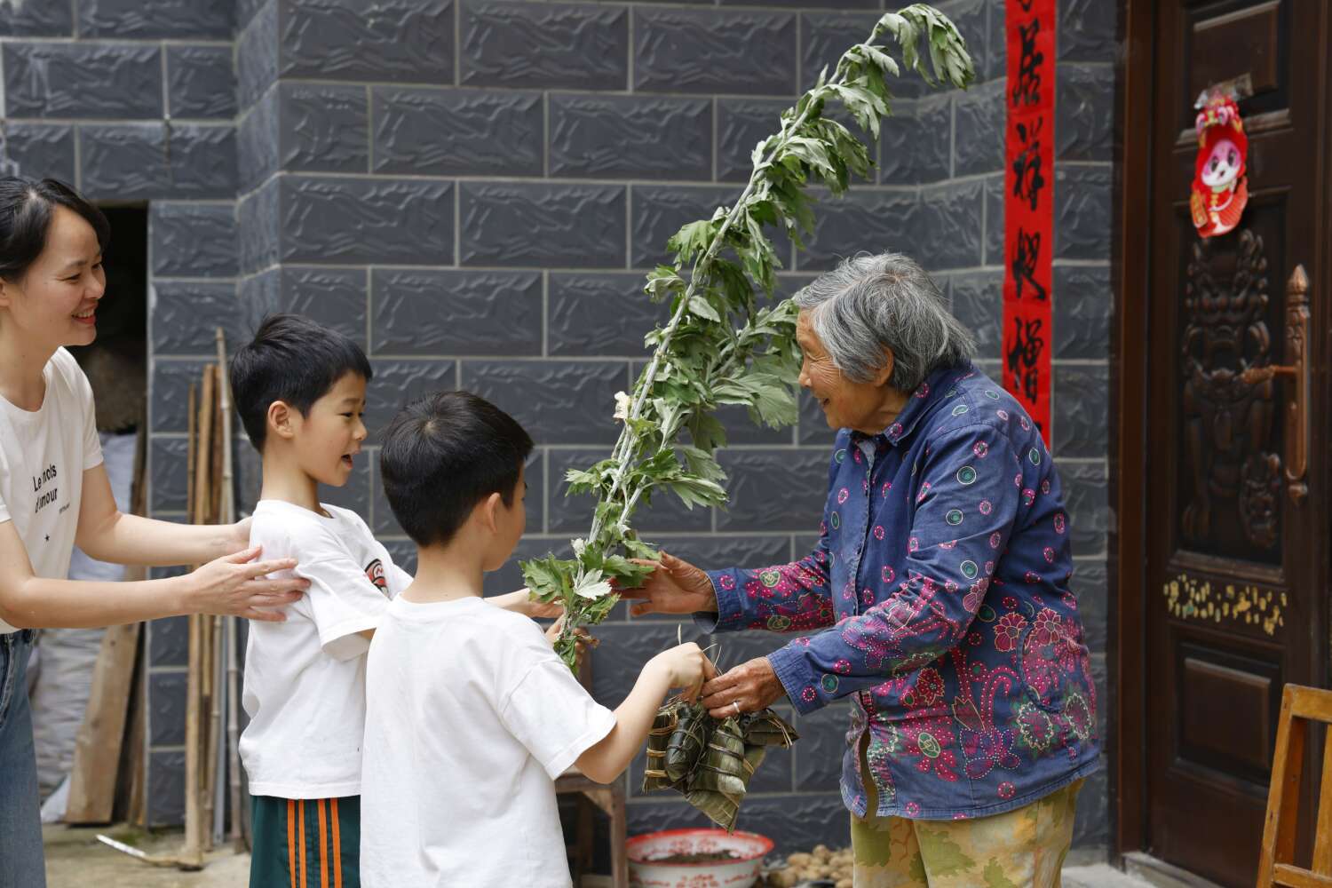 五月的顯後村棗林葳蕤、風光旖旎。左口鄉是著名的“中國南棗之鄉”,所產的“金絲琥珀蜜棗”在清朝乾隆年間就是貢品。1985年,金絲琥珀蜜棗還獲得了農牧漁業部優質產品稱號,產品遠銷全國各地和東南亞國家。在重點產區的顯後村,來自城裏一對對親子家庭在顯後村廚娘們的帶領下,學包延續幾百年的“金絲琥珀蜜棗”傳統粽子。捋粽葉、填糯米、放入金絲琥珀蜜棗……不一會兒,一隻只形態飽滿又有濃香的粽子就包好了。與此同時,一旁的制香囊活動也吸引了許多孩子參與。他們將艾葉、丁香、玫瑰等中藥材放入香囊中,並小心翼翼地用針線縫好,寓意求吉祈福。隨後,孩子們將粽子和艾草送到村中老人手上,讓他們感受到節日的歡樂和温暖。