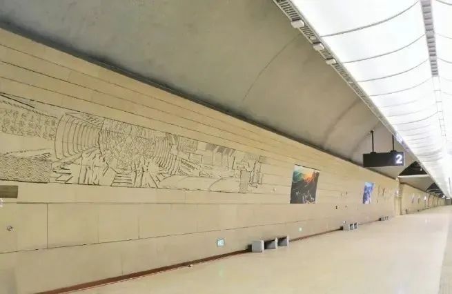 你注意過八達嶺長城站站台牆面上的壁畫嗎?在1站台的隧道里,一組岩石壁畫包含着京張鐵路的車站、老機車等元素,講述了百年前京張鐵路的故事;在2站台,同樣有一組岩石壁畫,復興號動車組、三臂台車穿插其中,講述了建設京張高鐵的故事。下次來這裏乘車,記得看一看!