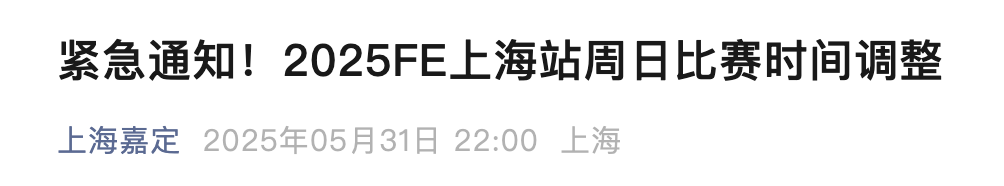 賽事發言人表示:“考慮到週日的惡劣天氣預警將對原定賽程造成影響,經與國際汽聯、參賽車隊及製造商共同協商,決定調整當日賽事安排。此舉旨在確保在降雨和光照條件允許的情況下,最大限度地完成當日比賽的賽道環節。保障觀眾、嘉賓及工作人員的安全與體驗是我們的首要考量,感謝主辦方及當地相關部門的高效協同,我們將全力為中國車迷呈現精彩賽事。”
