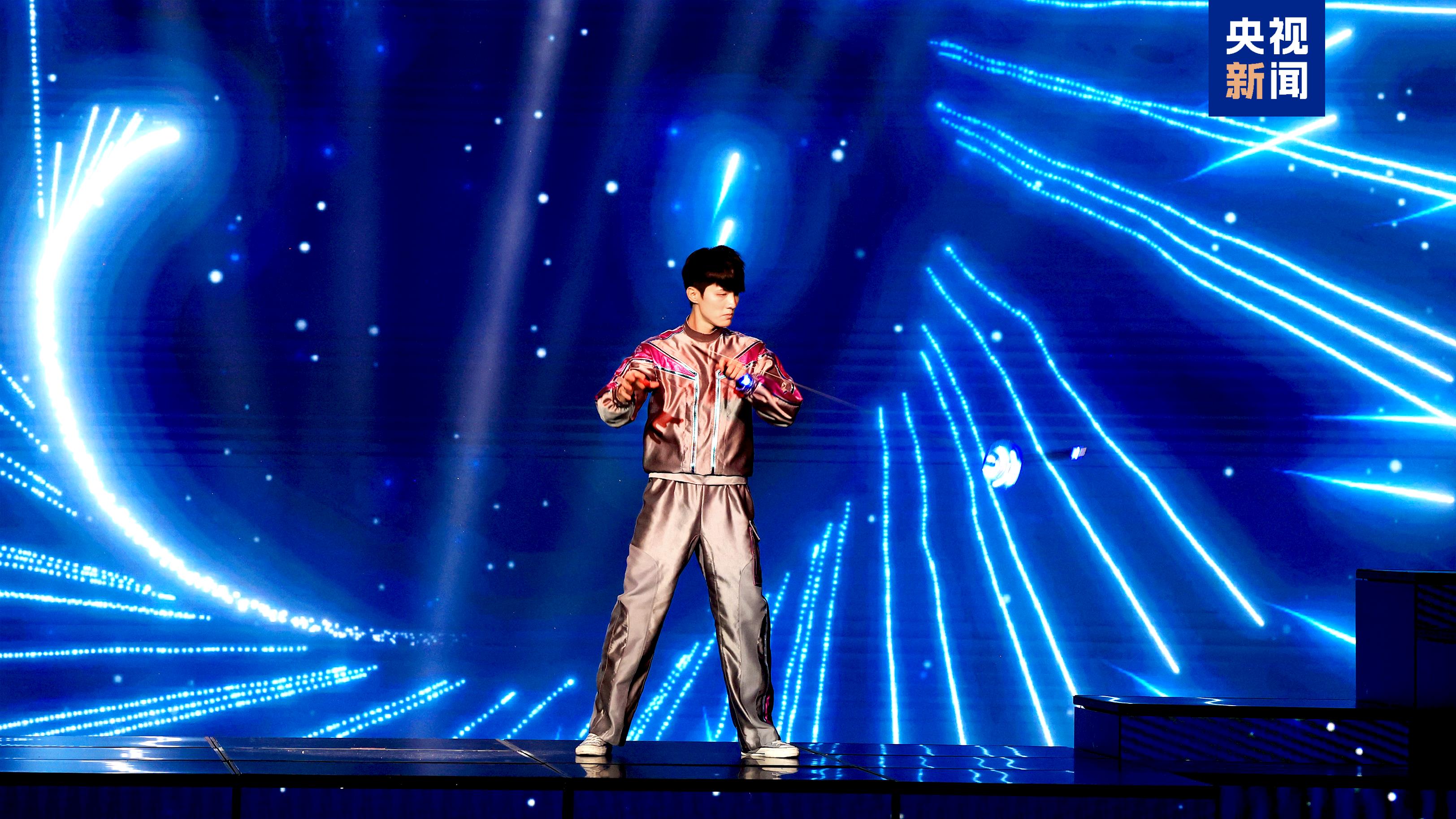 光電空竹邂逅藝術體操,《追光逐夢》利用動態軌跡打造奇幻宇宙空間。《快樂盲盒》則以“開盲盒”的形式串聯精品動畫歌曲,鼓勵孩子們勇敢追夢。《挖哩哩》《彩色的情緒》加入機器人的“童趣”表演,陪伴孩子們探索多彩世界、點亮成長之路。