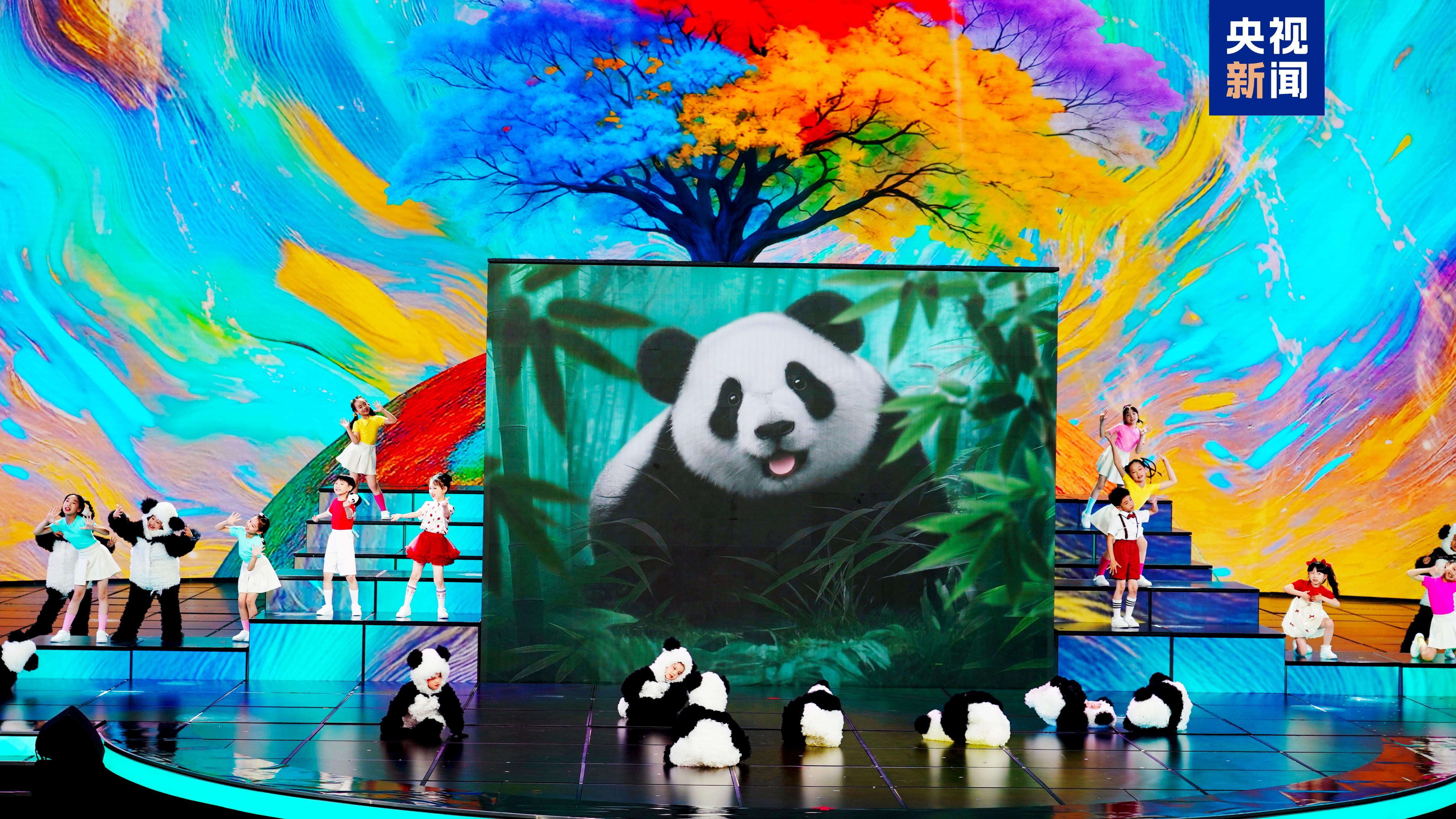 晚會同名主題曲《未來花正開》由來自北京、江蘇、陝西、青海、河南、廣東等省市及澳門特別行政區的多位少年兒童共同作詞、AI作曲,呈現百花競放的歡騰景象。《秒回童年》通過人工智能技術,請91歲表演藝術家陶玉玲、張勇手與童年時期的自己驚喜“同框”,展現時光流轉中不變的藝術初心與傳承力量。《抱抱地球》中立方體升降屏上生動呈現出一隻“會唱歌的裸眼3D大熊貓”,它與小朋友共唱自然之歌,傳遞對地球的關愛。