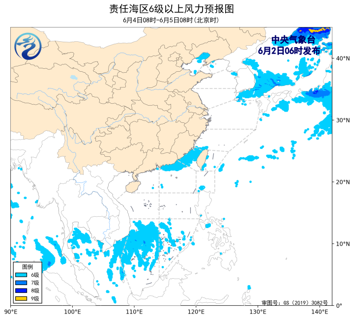 4日08時至5日08時,台灣海峽、南海東北部海域將有4~6級、陣風7級的東北風,渤海、南海西南部海域將有4~6級、陣風7級的偏西到西南風。