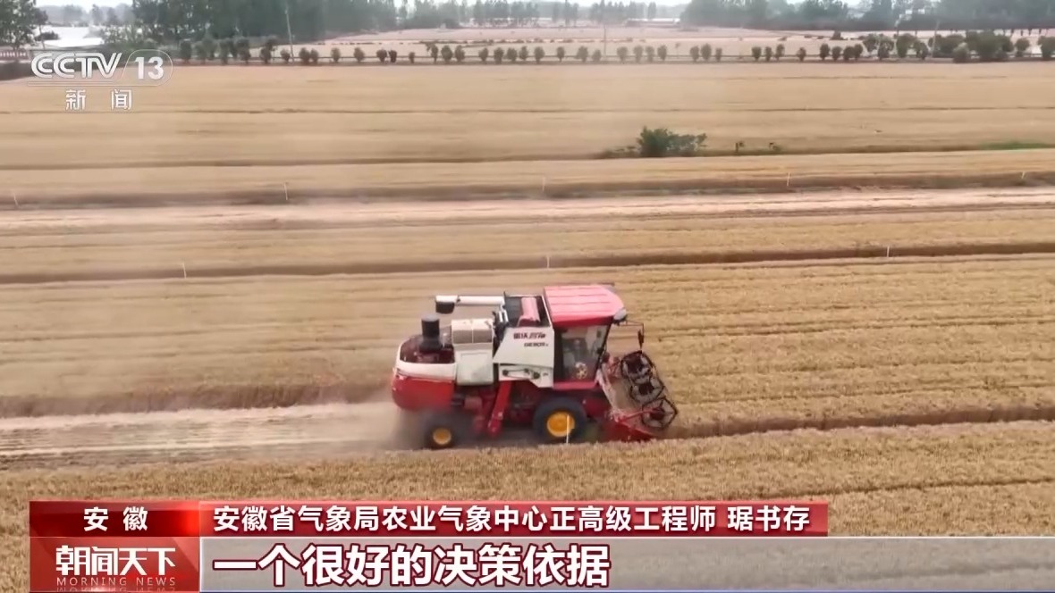 *安徽省氣象局農業氣象中心正高級工程師 琚書存:*我們提前5天就製作了基於縣域精細化的農機適宜度收穫的服務產品,預測全省將遇明顯的降水過程,這為農業部門精準調度農機,為農機手跨區作業提供了一個很好的決策依據。