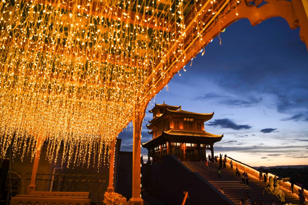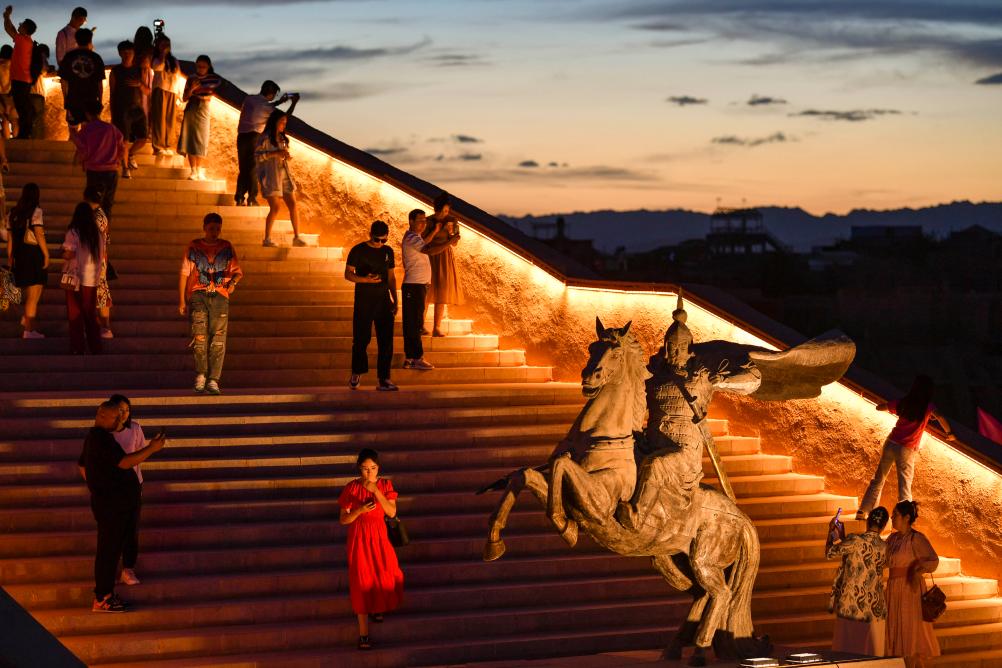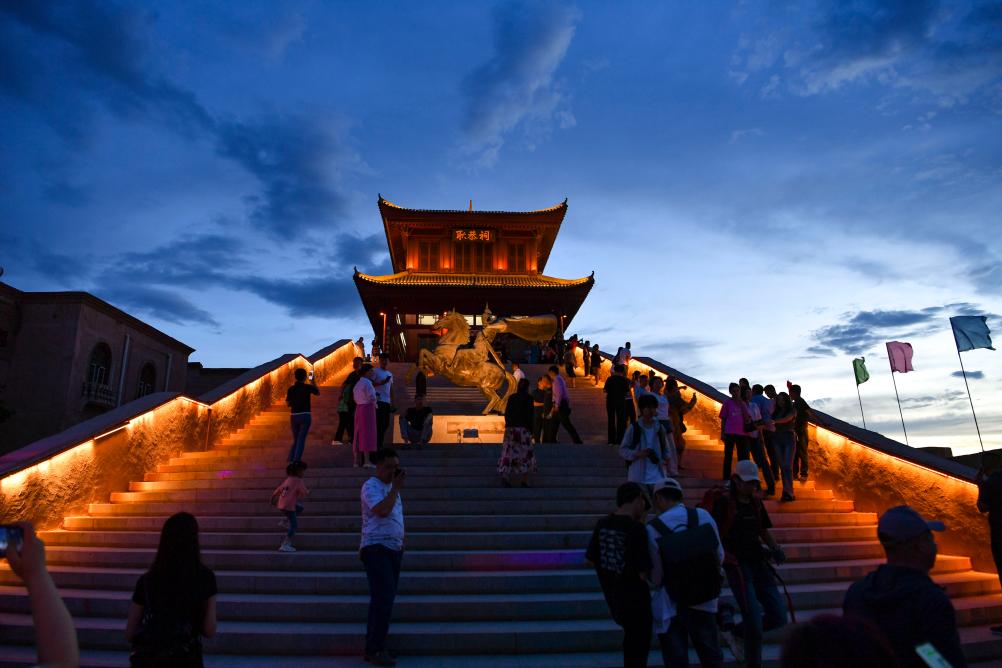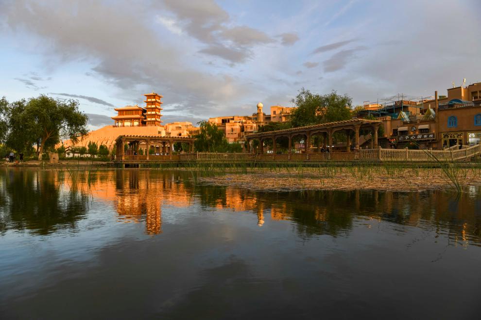 人們在新疆喀什市盤橐城景區內遊玩(2023年6月14日攝)。新華社記者 胡虎虎 攝