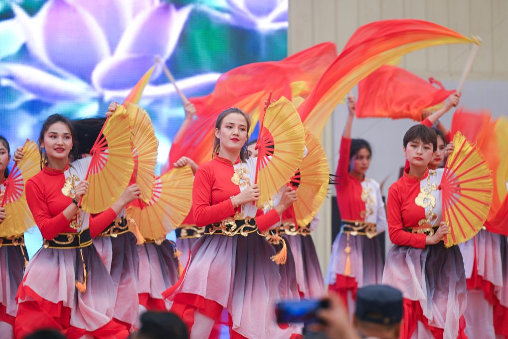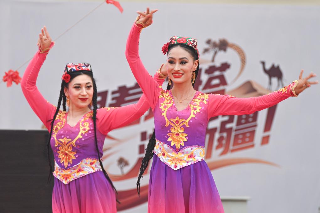 2025年5月28日,演員在2025中國環塔國際拉力賽新疆喀什地區葉城縣賽段迎賓晚會上表演。新華社記者 辛悦衞 攝