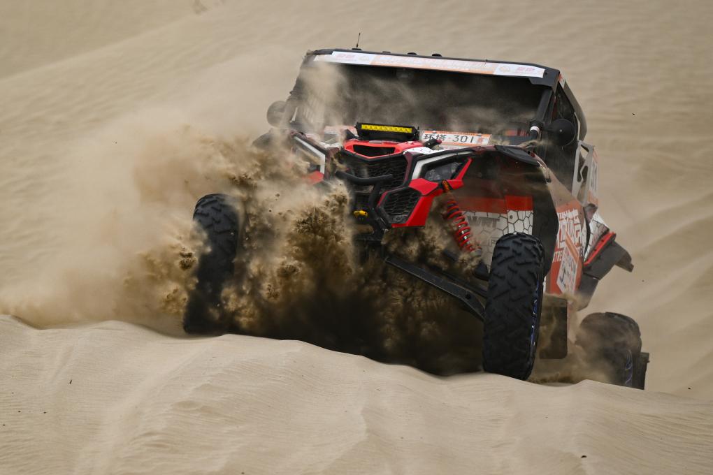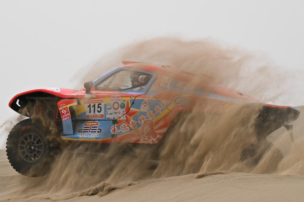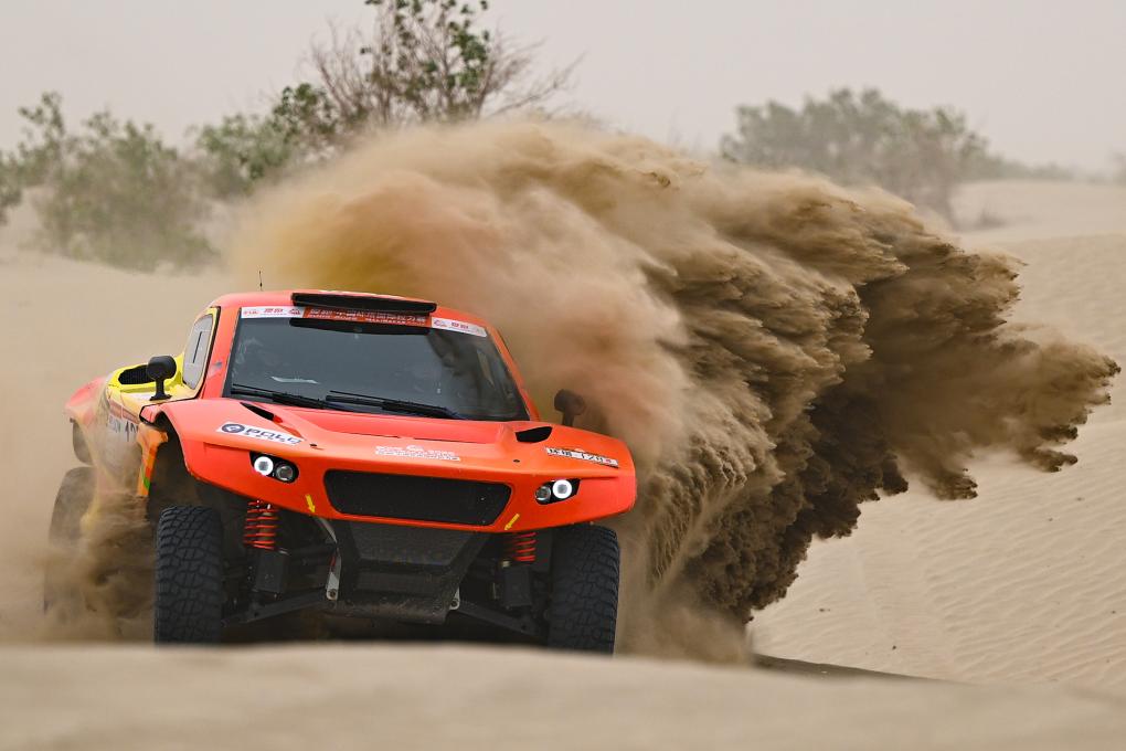 2025年5月31日,極道體育黑熊輪胎車隊車手趙善鵬、領航員郭峯在比賽中。新華社記者 辛悦衞 攝