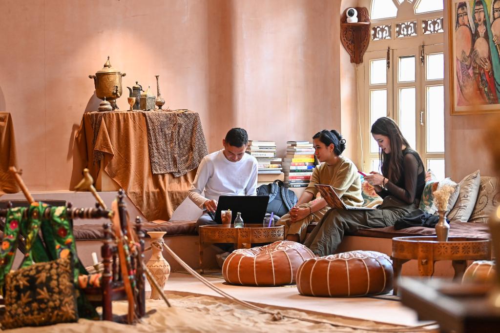 在新疆喀什古城景區,遊客在麥吾蘭·圖拉克的咖啡館休息(2023年4月17日攝)。新華社記者 丁磊 攝