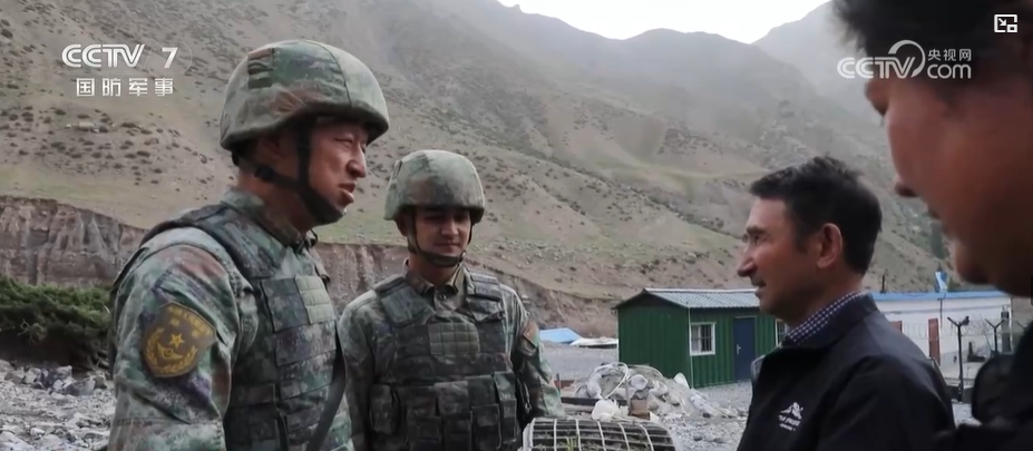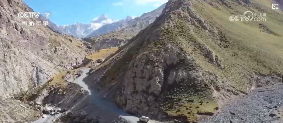 告別牧民後,巡邏分隊很快就來到了一處山口,他們要從這裏徒步巡邏至點位。入伍16年的段海波是隊伍中巡邏次數最多、經驗最豐富的老兵,這已經是他第15次進駐前哨,眼前的一草一木、每一座山頭埡口,他都再熟悉不過。