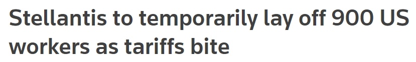 美國汽車行業巨頭斯特蘭蒂斯集團表示,由於關税政策對汽車行業產生嚴重影響,該公司決定裁撤其五家美國工廠的900名員工,並暫停加拿大和墨西哥的兩家裝配廠的生產業務。