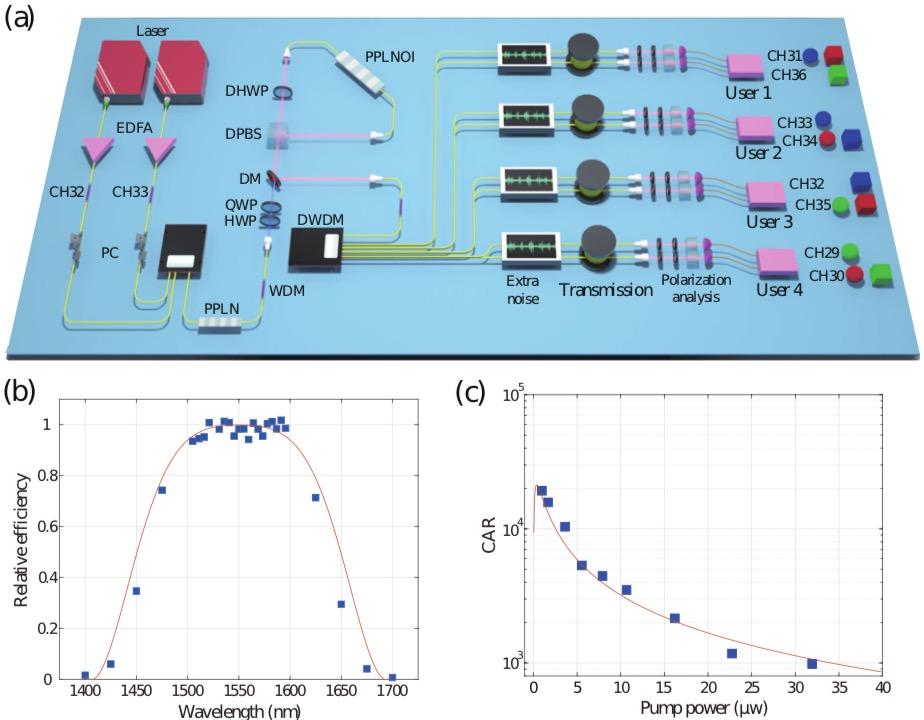 陳險峯教授團隊長期深耕這一領域。2021年,他們率先構建出15節點、40公里的量子直接通信網絡。在這項最新研究中,科研人員創新性地採用雙泵浦光參量下轉換技術,構建起具有高抗干擾能力的量子糾纏分發系統。實驗結果顯示,即使在300公里的長距離傳輸後,各節點間的量子態保真度仍保持在85%以上,光子對數到達率穩定在300—400赫茲,這意味着經過編碼後,理論通信速率可達每秒數比特。