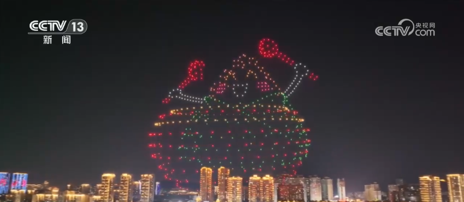在四川南充,隨着無人機編隊從廣場騰空而起,一個以龍舟隊“指揮官”為靈感創作的卡通粽子在夜空中揮舞着鼓槌,為“龍舟競渡”吶喊助威。