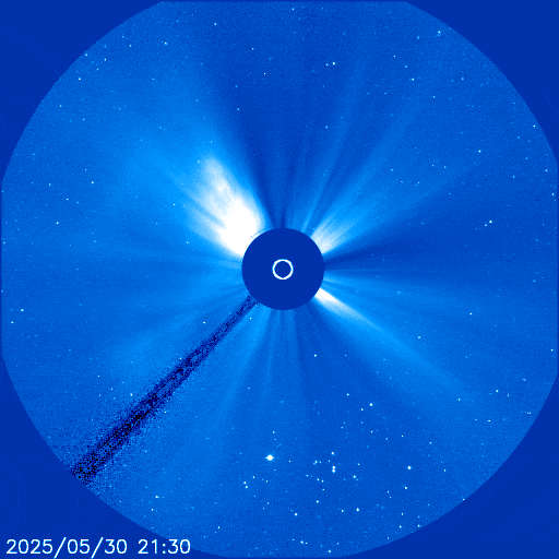 △此次太陽爆發形成的全暈日冕物質拋射 SOHO衞星