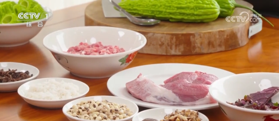 苦也是端午的味道。在廣東河源,釀苦瓜是客家人餐桌上不可缺少的一道端午美食。苦瓜,先切成三釐米左右的段,挖去瓜瓤,“釀”表示“填入餡料”的意思,重要秘訣是餡料的選材。“主要是選擇是豬前夾肉木耳增加脆感糯米,米豆,祛濕的,香菇增香,紅莧菜正是時令的蔬菜,苦瓜的功效是清熱解毒降火。”當地商家介紹。